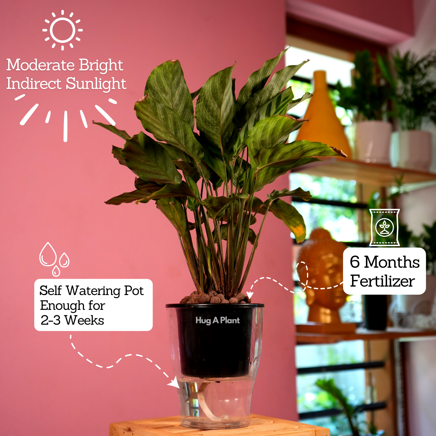 Calathea Freddie / Peacock Plant- Live Plant (With 5 Inch Self-Watering Pot & Plant)