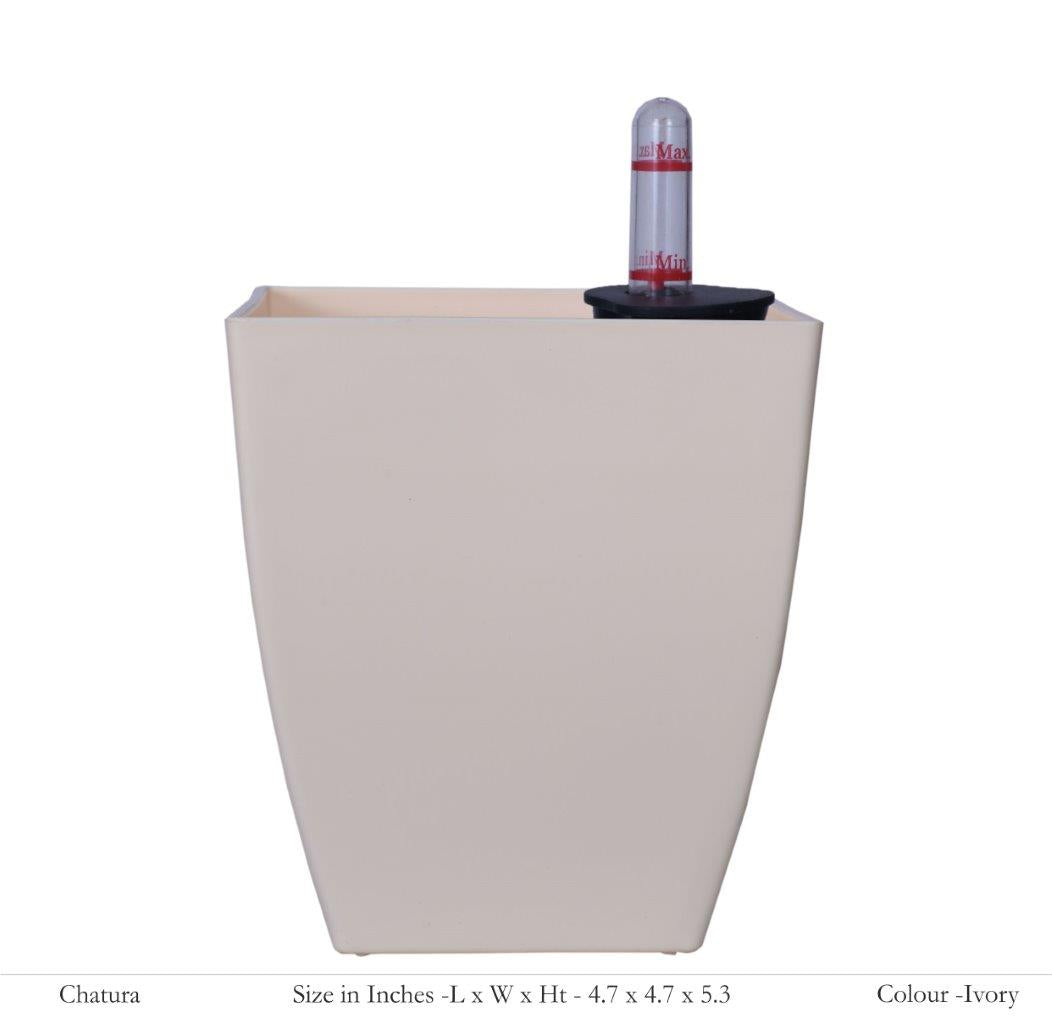 Chatura 12cm Square Plastic Pot With Self-Watering Kit