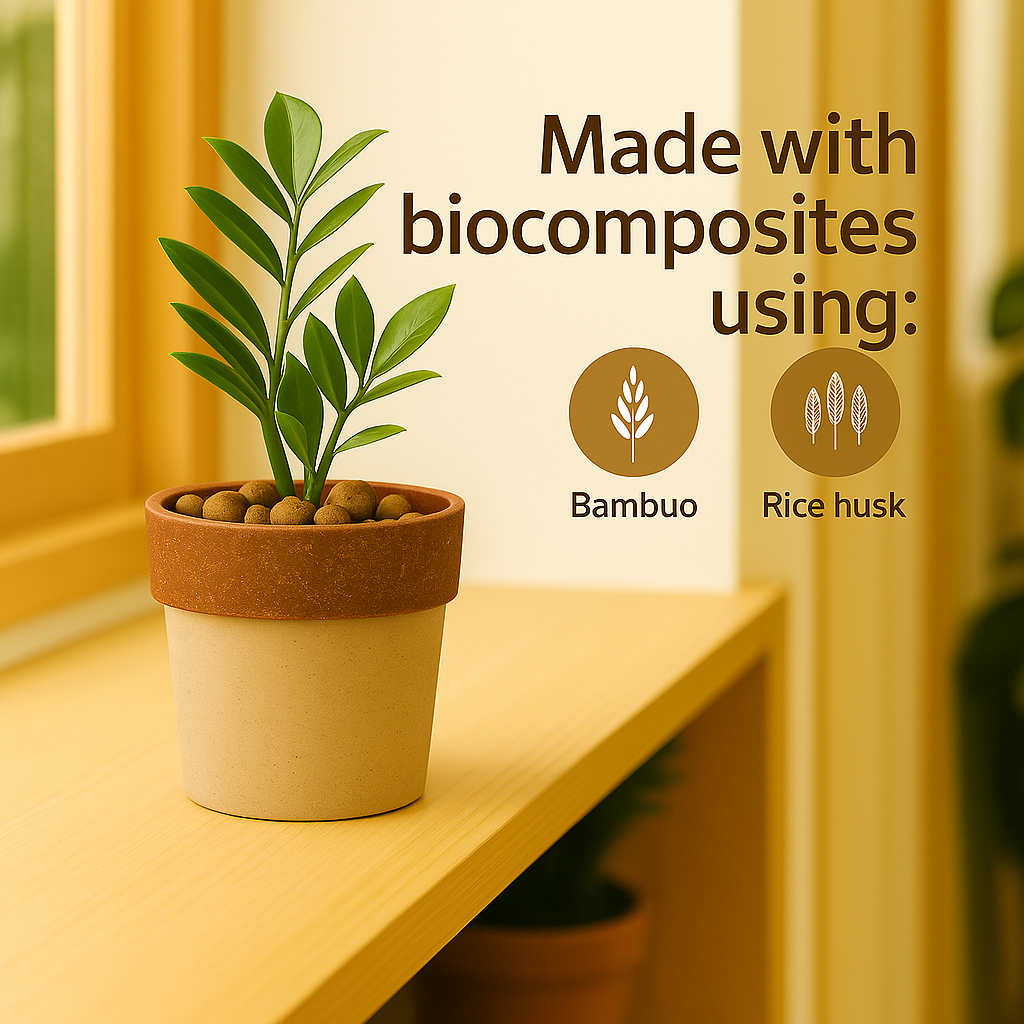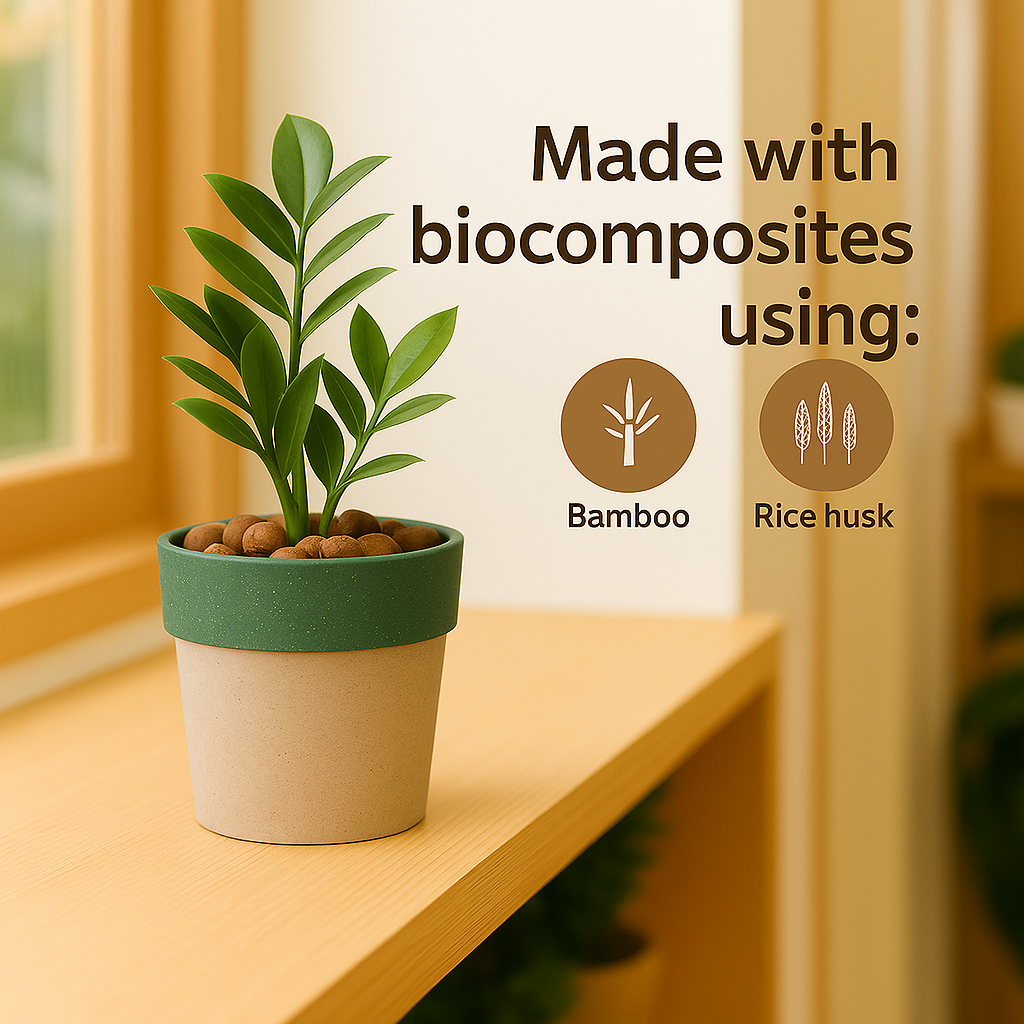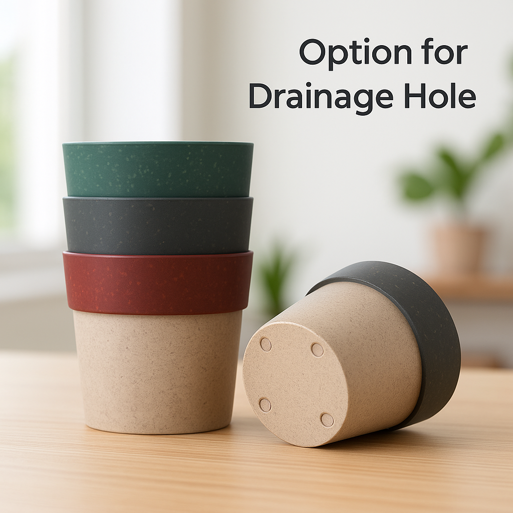 The Eco Series Planter seamlessly blends style with sustainability, making it a perfect addition to any indoor or outdoor space. Crafted from eco-friendly materials such as rice husk, coffee husk, and bamboo, this planter not only showcases your favorite greenery but also underscores your commitment to environmentally conscious living.