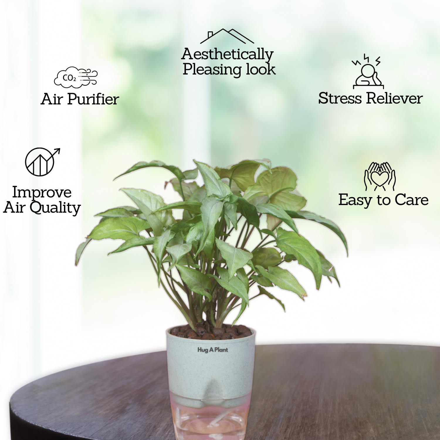 White Syngonium - Live Plant (With Self-Watering Pot & Plant)